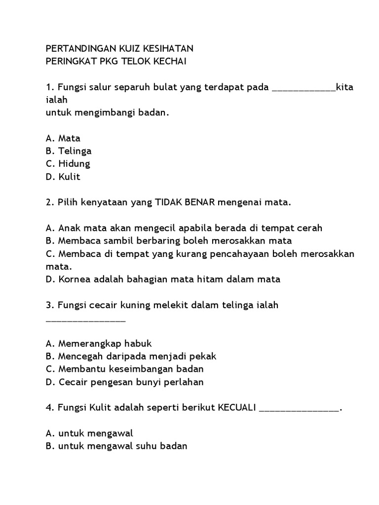 Menteri Kesihatan dan organisasi KKM. Berikut merupakan contoh soalan seksyen A Pengetahuan Am Pembantu Kesihatan Awam untuk rujukan dan gambaran awal anda bagaimana bentuk atau set soalan topic dan tajuk yang mungkin ditanya dalam peperiksaan online spa nanti. Hidup seperti biasa 4.